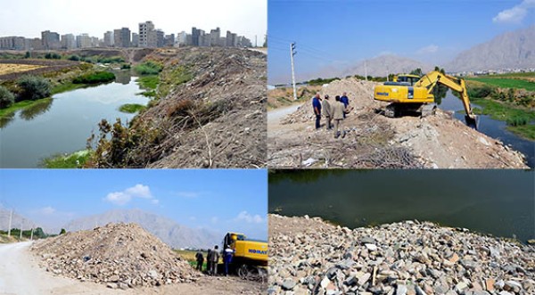 برداشت نخاله های ساختمانی از بستر رودخانه قره سو کرمانشاه