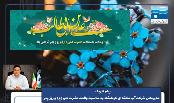 اینجانب ولادت با سعادت حضرت علی(علیه السلام ) و روز پدر را به کلیه ارادتمندان خاندان عصمت و طهارت علی الخصوص همکاران محترم شرکت آب منطقه ای کرمانشاه تبریک و تهنیت عرض نموده و ضمن آرزوی توفیق و سلامتی برای پدران فداکار این مرز و بوم، سربلندی این عزیزان را از درگاه خداوند منان خواستارم.